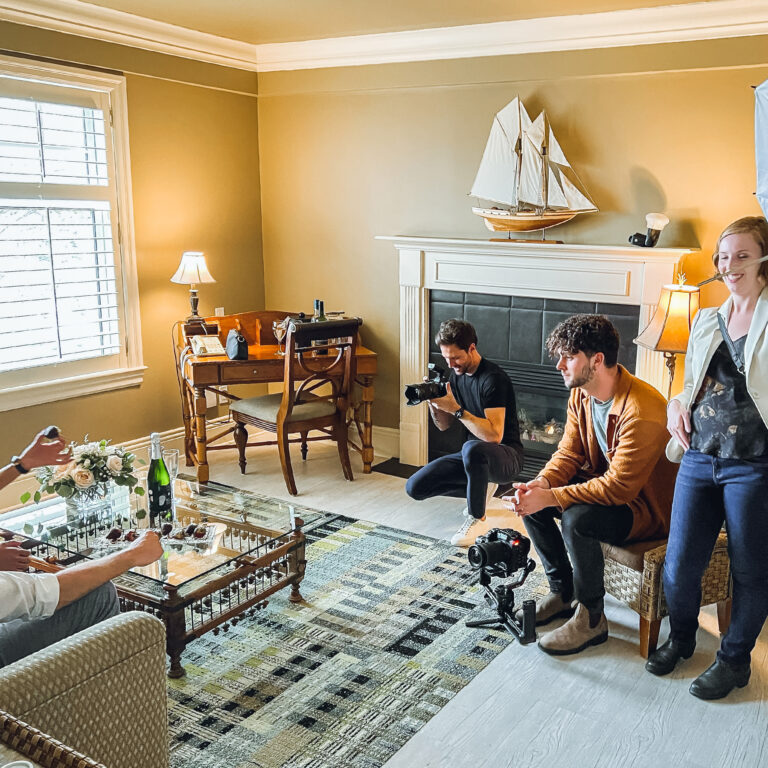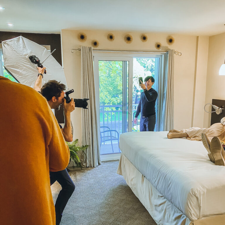 Planning a photo/video shoot is a lot of work, so you might as well make it count. Since we were working on a brand-new website for Niagara’s Finest Hotels, our priority was to create stunning visuals that effectively captured the properties and surrounding town for the online experience. But knowing that we would have creative talent on hand, including models, it made sense to create content specifically for the brand to use in their social media channels and marketing campaigns long into the future.