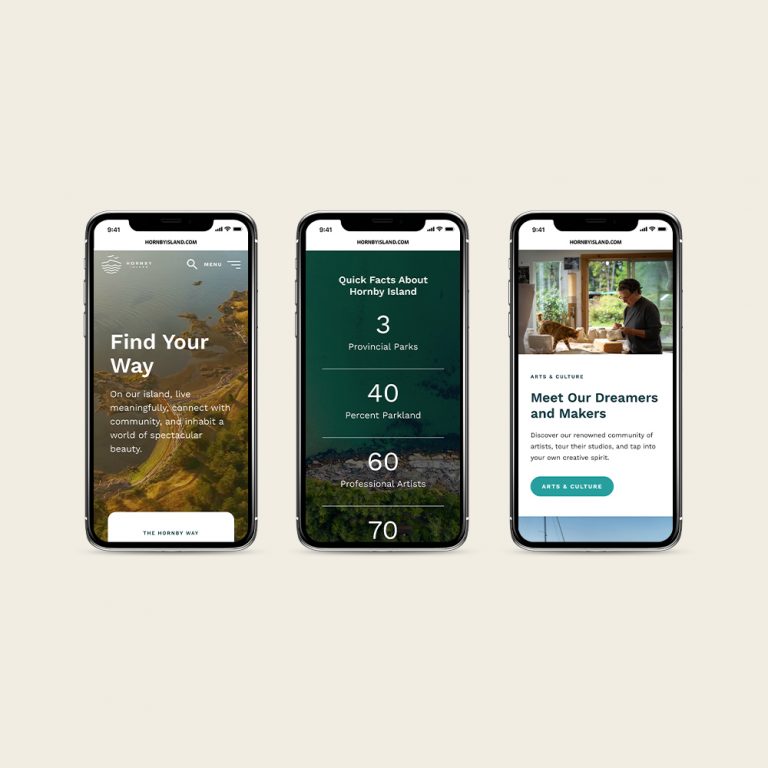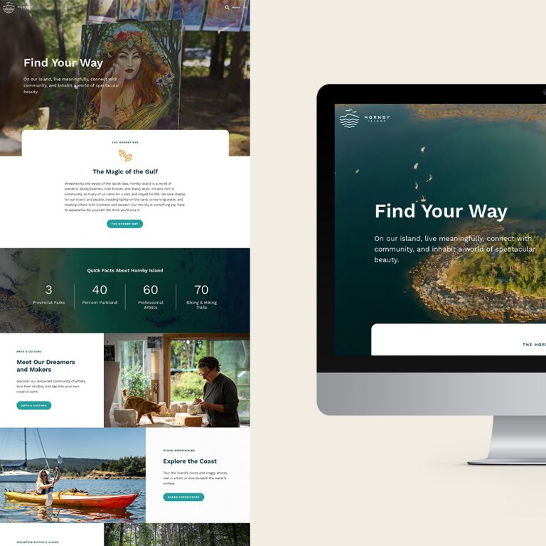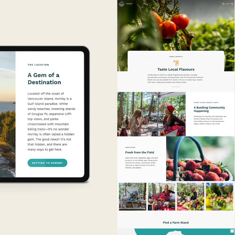 We provided Hornby with a clean, modern rebrand, creating a new logo, tagline, and web presence to better capture the wonders of the island, communicate the unique way of life of Hornby’s residents, and promote the island’s small businesses.