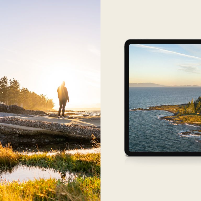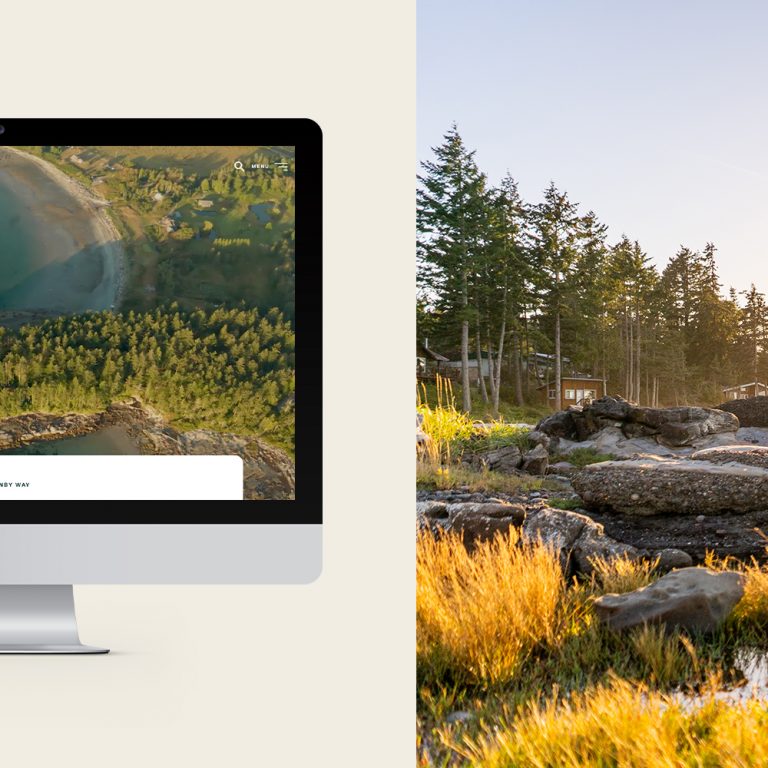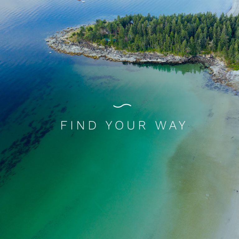To provide Hornby with a simplified but striking logo, we made use of bold lines to convey the island’s connection to land, sea, and sky. A curved line represents Mount Geoffrey’s profile while sea birds flying overhead introduce some subtle movement. Accompanying this strong mark is an evocative tagline—Find Your Way—which speaks to Hornby as both a destination worth traveling to and a place of discovery and connection, where people are encouraged to pursue their own meaningful path.