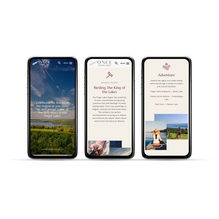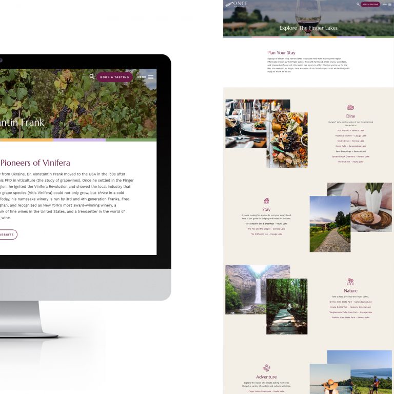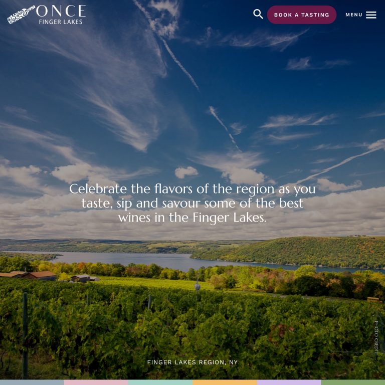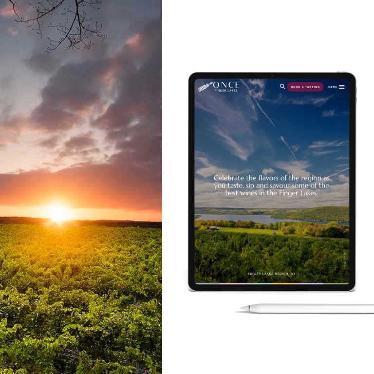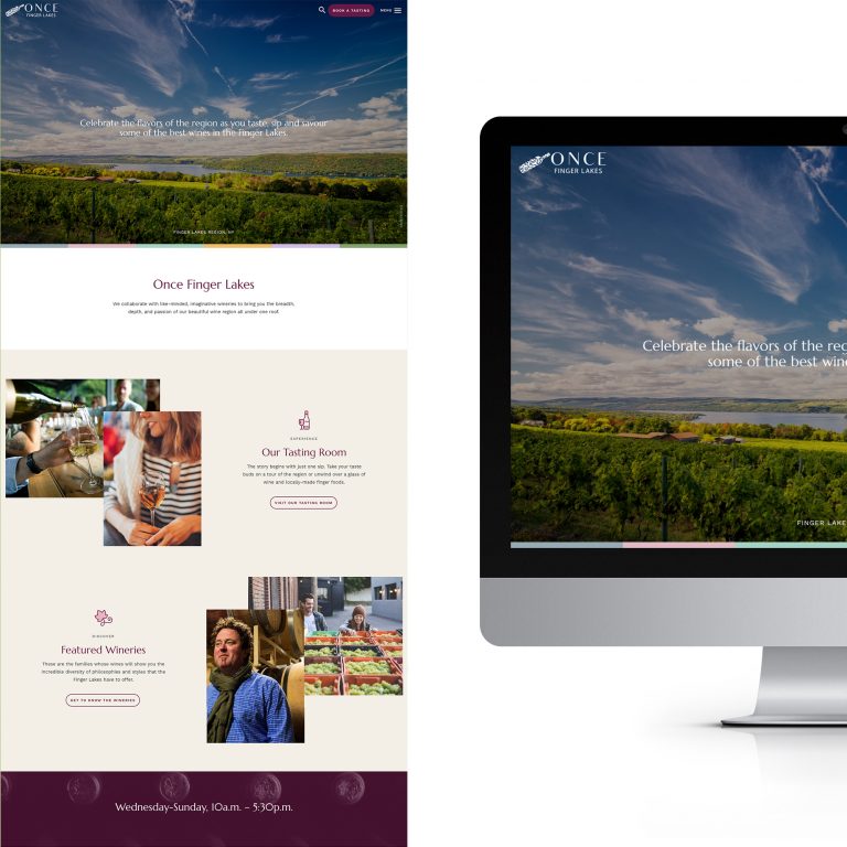 To announce its launch to the world, Once Finger Lakes needed an online presence that would convey the uniqueness of the tasting room experience, effectively market the wines on offer, and celebrate the region and its delicious products.