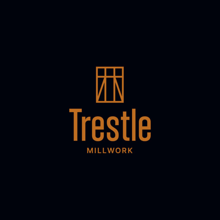 The typography is modern, confident, and sophisticated, with a colour reminiscent of wood. The gently curving lines of “Trestle” meet the bold upper-case letters of “Millwork,” communicating the brand’s artistry and rigour.