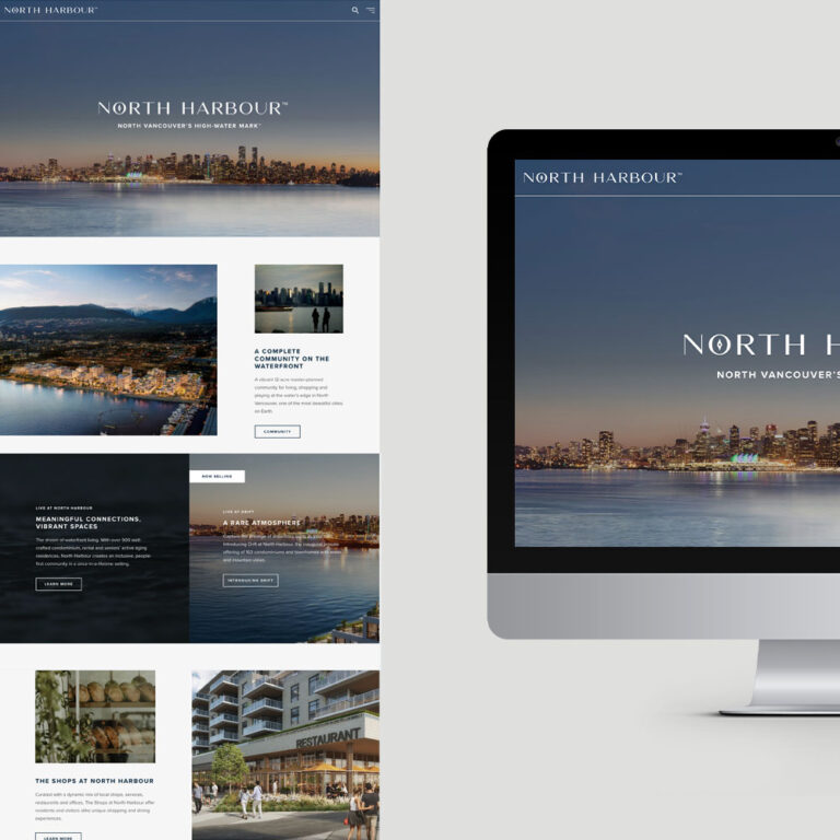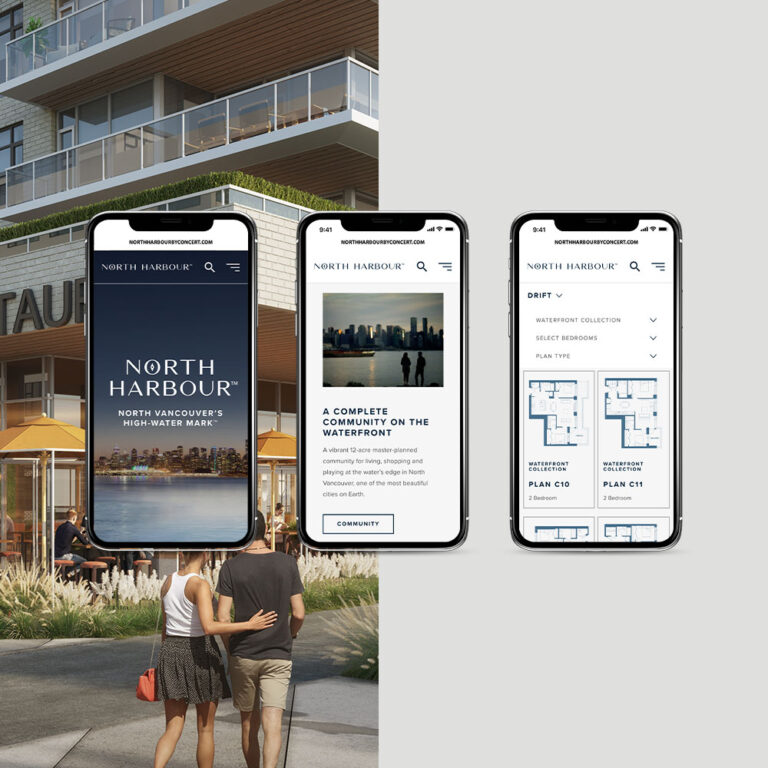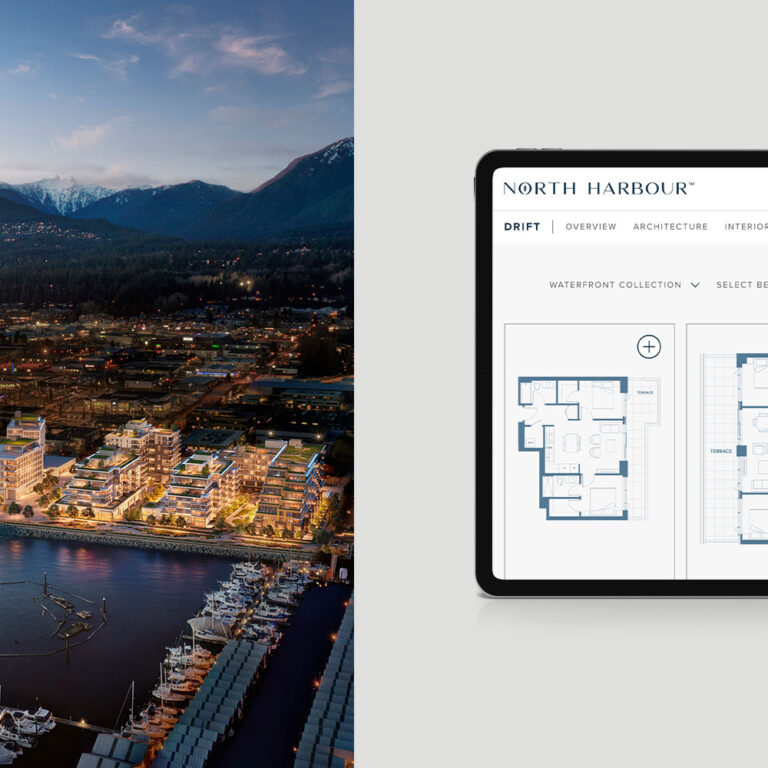 Coming soon to North Vancouver’s waterfront is a 12-acre master-planned community. North Harbour is an exciting development by Concert Properties, one that will bring together gorgeous residences, bustling commercial spaces, and vibrant public amenities. The first residence has already been announced—Drift, an elegant collection of condominiums—but many more are to come, so North Harbour needed a web presence robust enough to grow with it and showcase the launch of each new sub-brand.