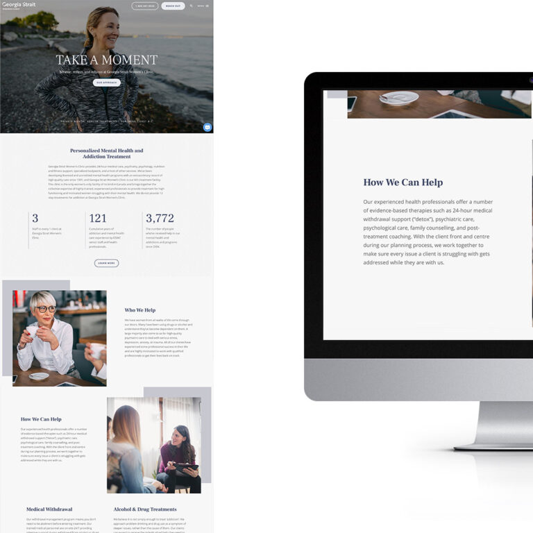Since 2004, Sunshine Coast Health Centre has been helping people overcome mental health and addiction struggles. Their success is due to their unique approach, transparent and ethical practices, effective programs, and certified clinical staff. With growth and the expansion of a second location for Georgia Strait Women’s Clinic, it was time to create a web presence to meet today’s mobile-centric audiences.