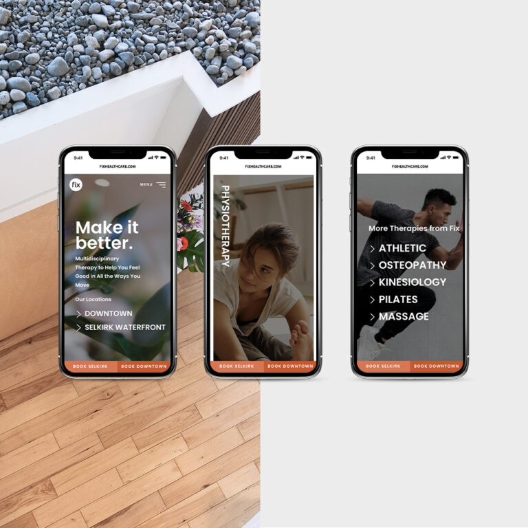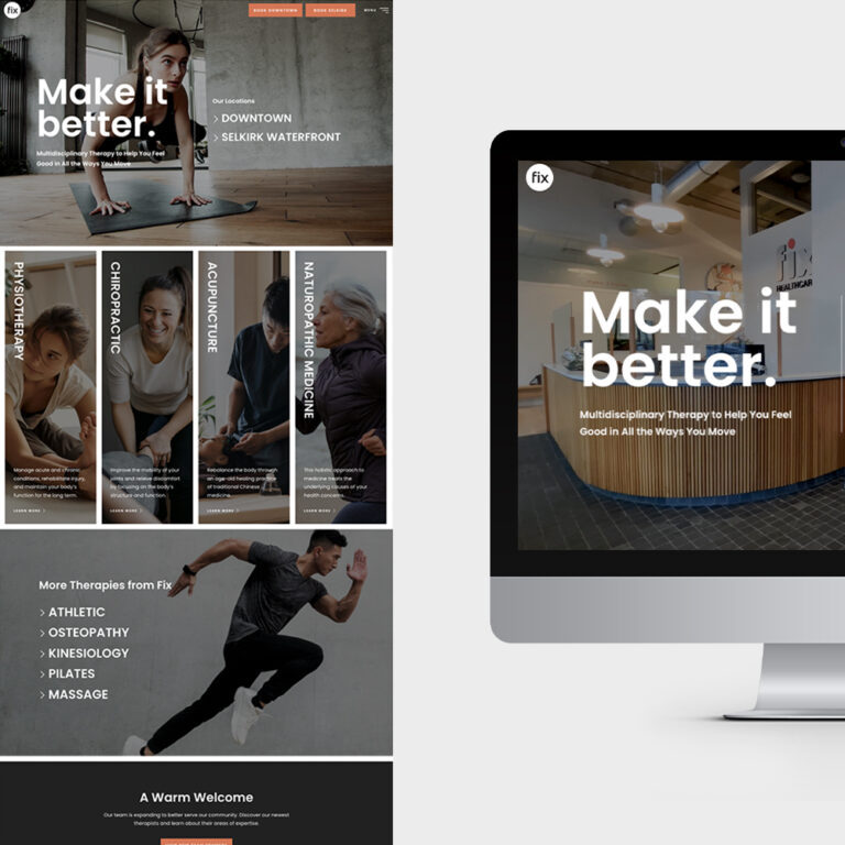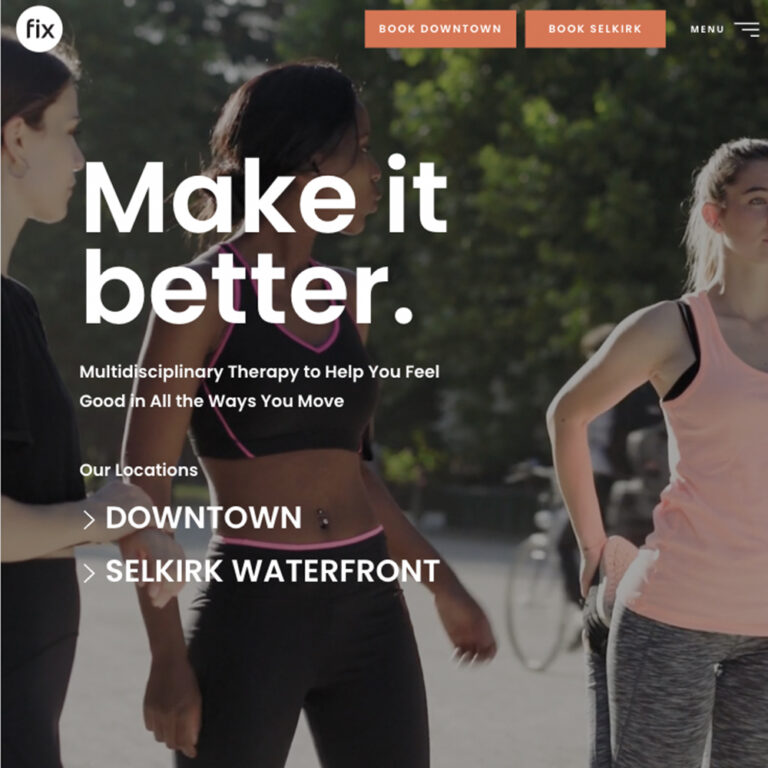 The new Fix website is fast-loading and responsive, allowing people to access the information they need quickly. When clients are ready to book their appointments, they don’t have to look far: links to the Jane app booking system are found throughout the site. Visitors can browse different therapies, learn about Fix’s therapists and story, and find out how to access ICBC care.