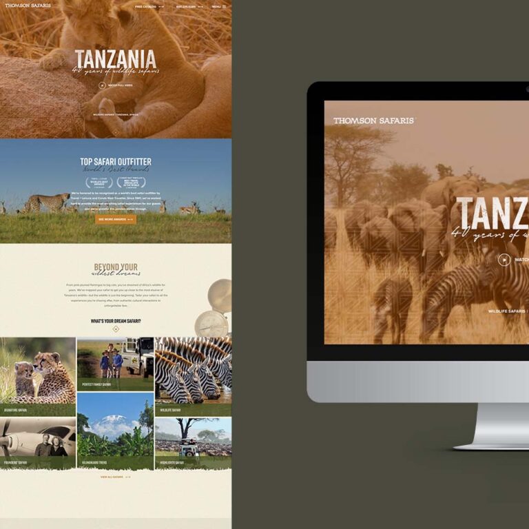 Thankfully, Joel wasn’t wrong to trust us. With good communication and one enjoyable trip to Boston, we established a strong working relationship. Our web developers ensured the site was an effective tool for the IT and sales teams, while our creative team brought in immersive video, large-scale photography, and appealing textures and colours to better capture the Thomson Safaris experience.