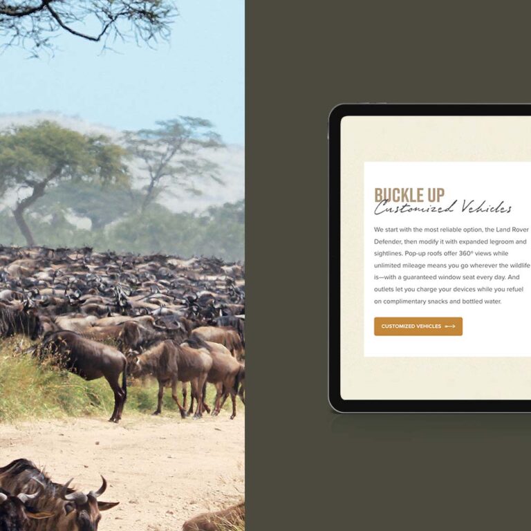 Their customers gravitated to it as well—and still do. “I tend to believe most websites need a refresh every five years, but this hasn’t been the case with ours,” Joel says. “Of course, we’ve grown with it, making content changes and expanding some sections, but the site holds up. People love it, and we still think it’s fantastic—classic and contemporary at the same time. When we ask people why they chose Thomson Safaris, they frequently point to the website. I agree—it captures the experience in a way that our static website did not.”