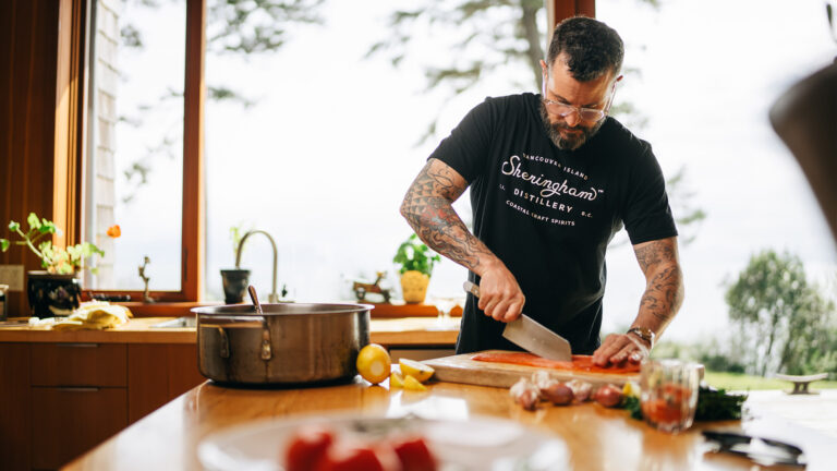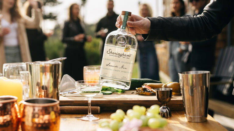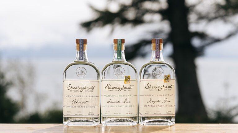Sheringham Distillery was started by Jason and Alayne MacIsaac, a husband-and-wife team whose culinary artistry, adventurous spirit, and love of their West Coast surroundings result in finely crafted, uniquely delicious spirits that evoke a strong sense of place. Despite their humble beginnings—the distillery began above a garage at the couple’s home in Shirley, BC—Sheringham has become a beloved brand on Vancouver Island and beyond, winning the world’s best gin award and finding fans internationally.