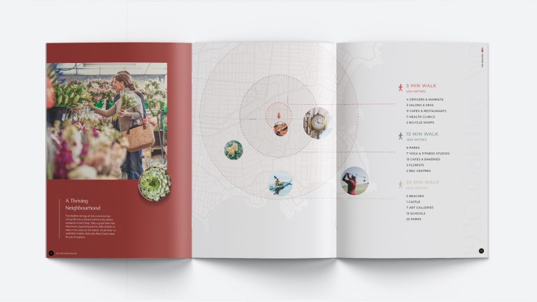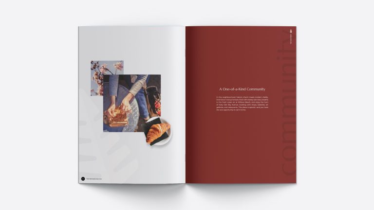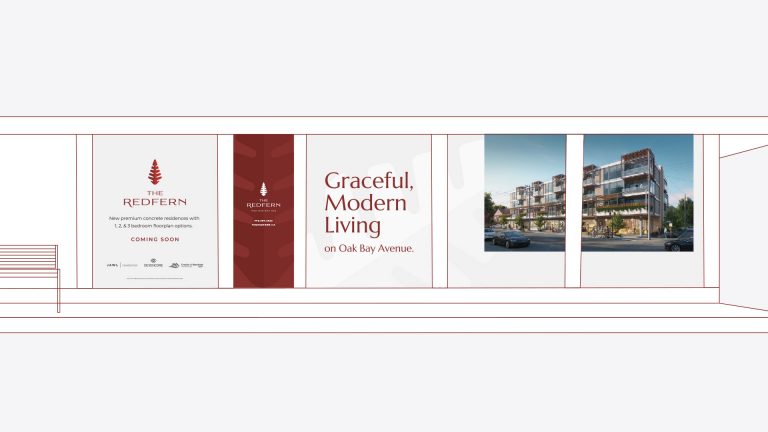 Meet The Redfern, named for one of the streets on which the building sits, its relationship to the natural world, and its site as a former garden centre. After naming the project, we created an eye-catching logo and robust brand identity, carried through each of the brand’s touchpoints. From a sleek web presence and high-end brochure featuring original photography, to online and print advertisements, to large-format signage for the presentation centre, our branding is as graceful and modern as The Redfern itself.